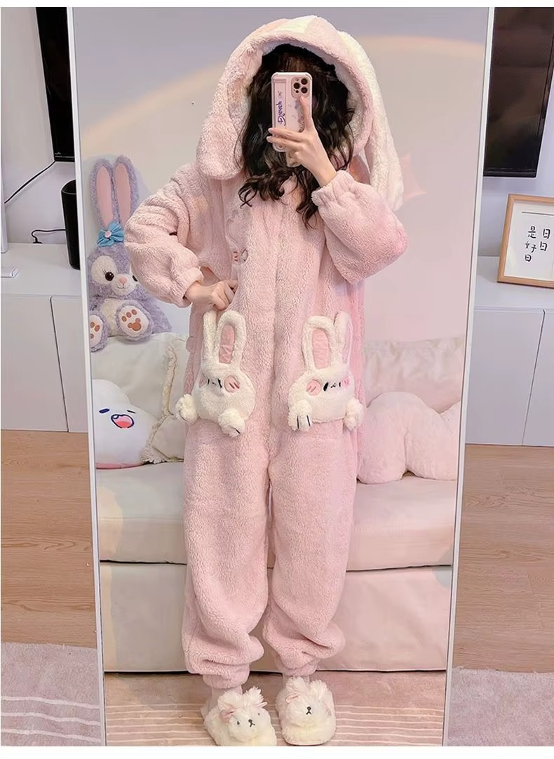 - Adorable Kawaii Style Design: Embrace the cuteness of kawaii culture with our charming cat-themed onesie featuring a sweet bunny design at the front and two adorable designs, adding a playful and whimsical touch to your sleepwear collection.